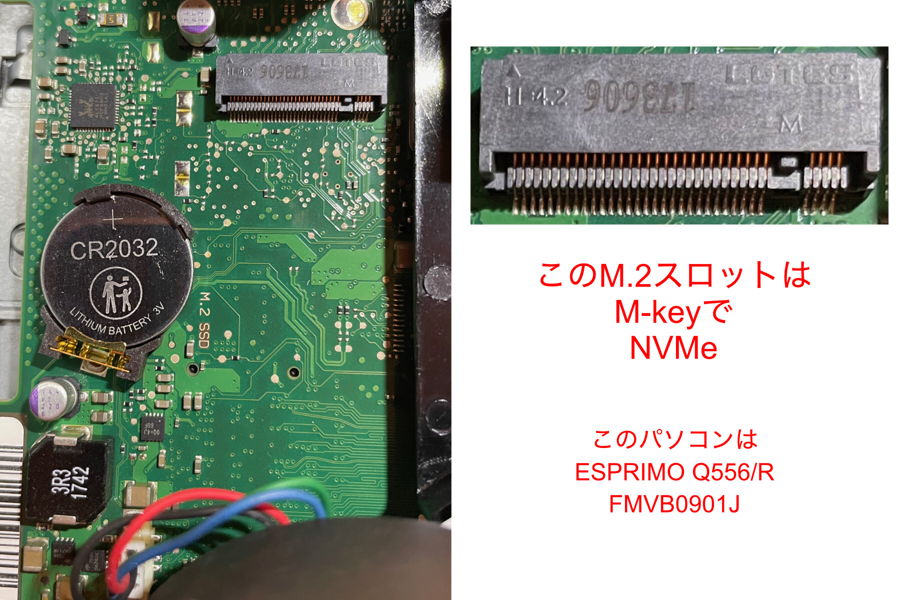 と言う事で、Q556/RのM.2スロットを直接良く見る事にしました。