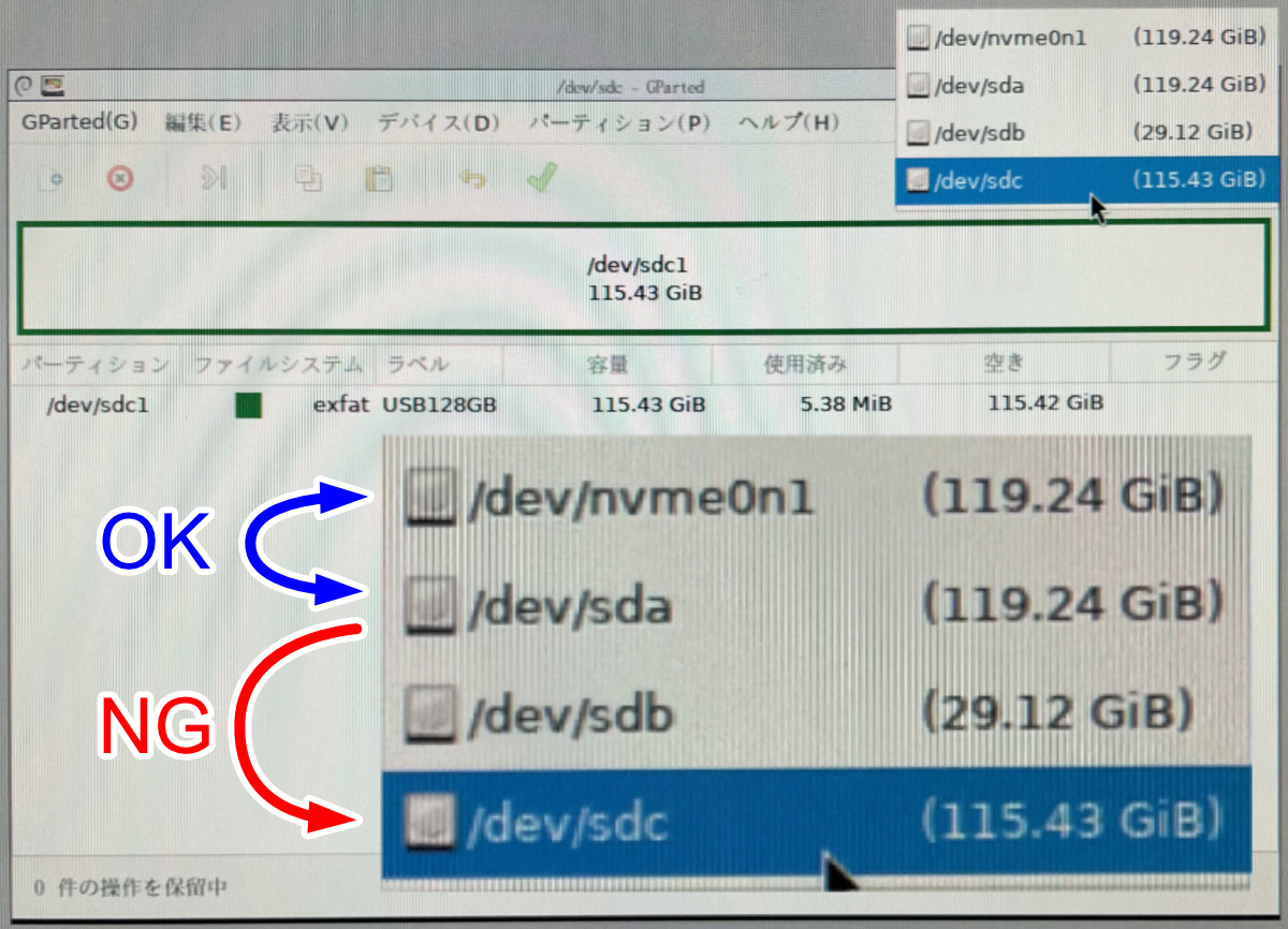 そのNGの場合、クローン先は128GBのUSBメモリ。書き込み速度が遅いけど、クローン出来るならと、4時間半位待ちました。